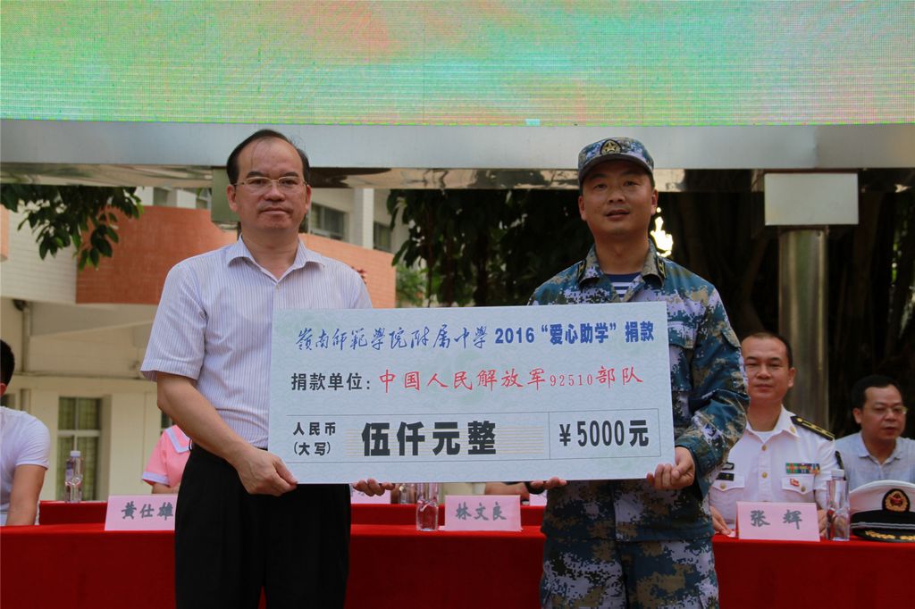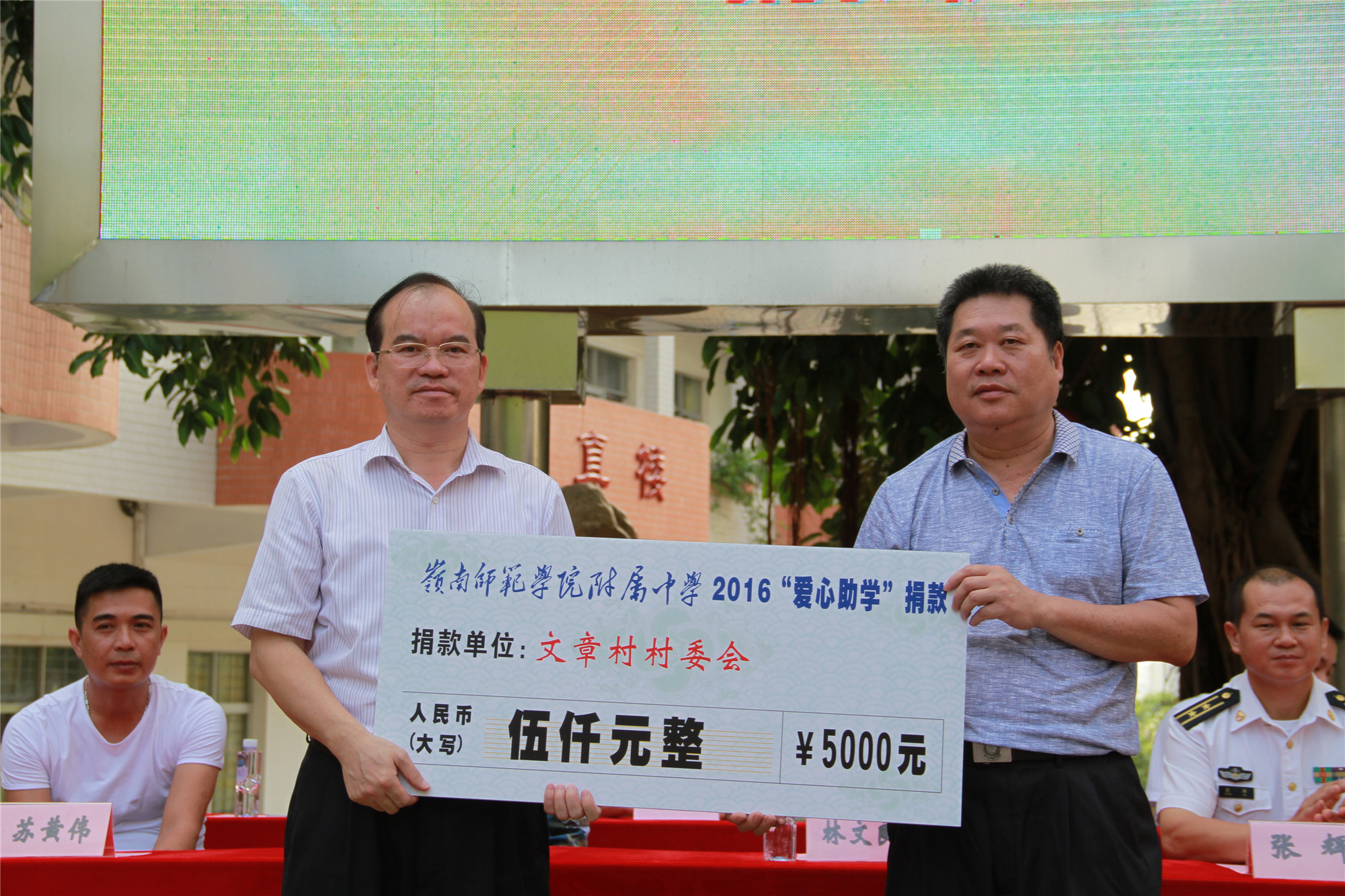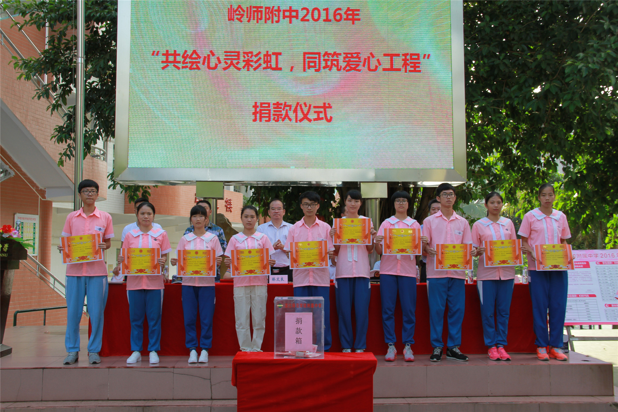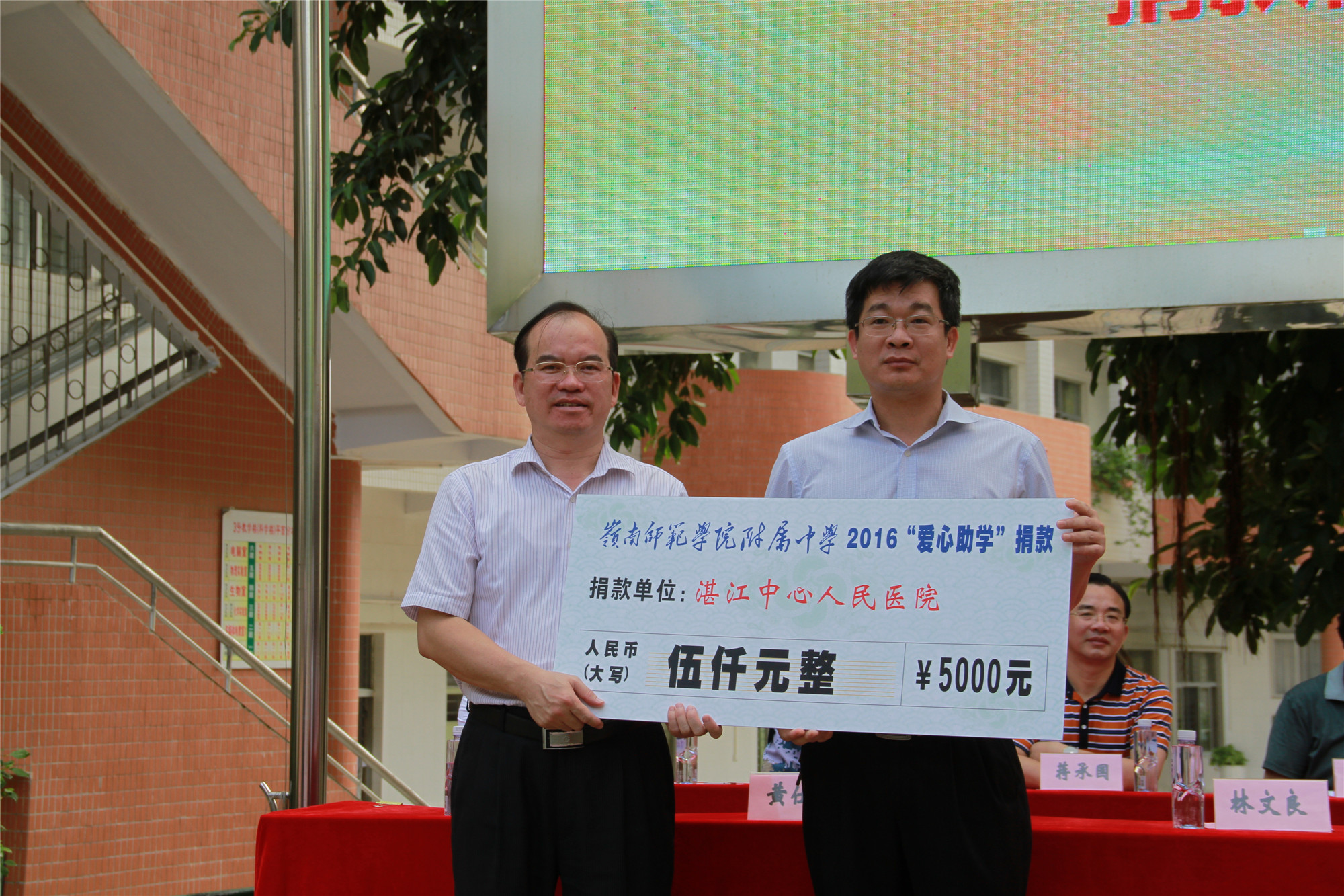 据悉,在我校全校师和广大学生家长,以及中国人民解放军92057部队、中国人民解放军92510部队、湛江中心人民医院、文章村、金田村、深圳翔程传媒教育集团、岭南师院附中东方实验学校等爱心单位的大力支持下,2016年岭师附中爱心助学工程再添善款近15万,将用于资助家庭贫困的学生完成学业。