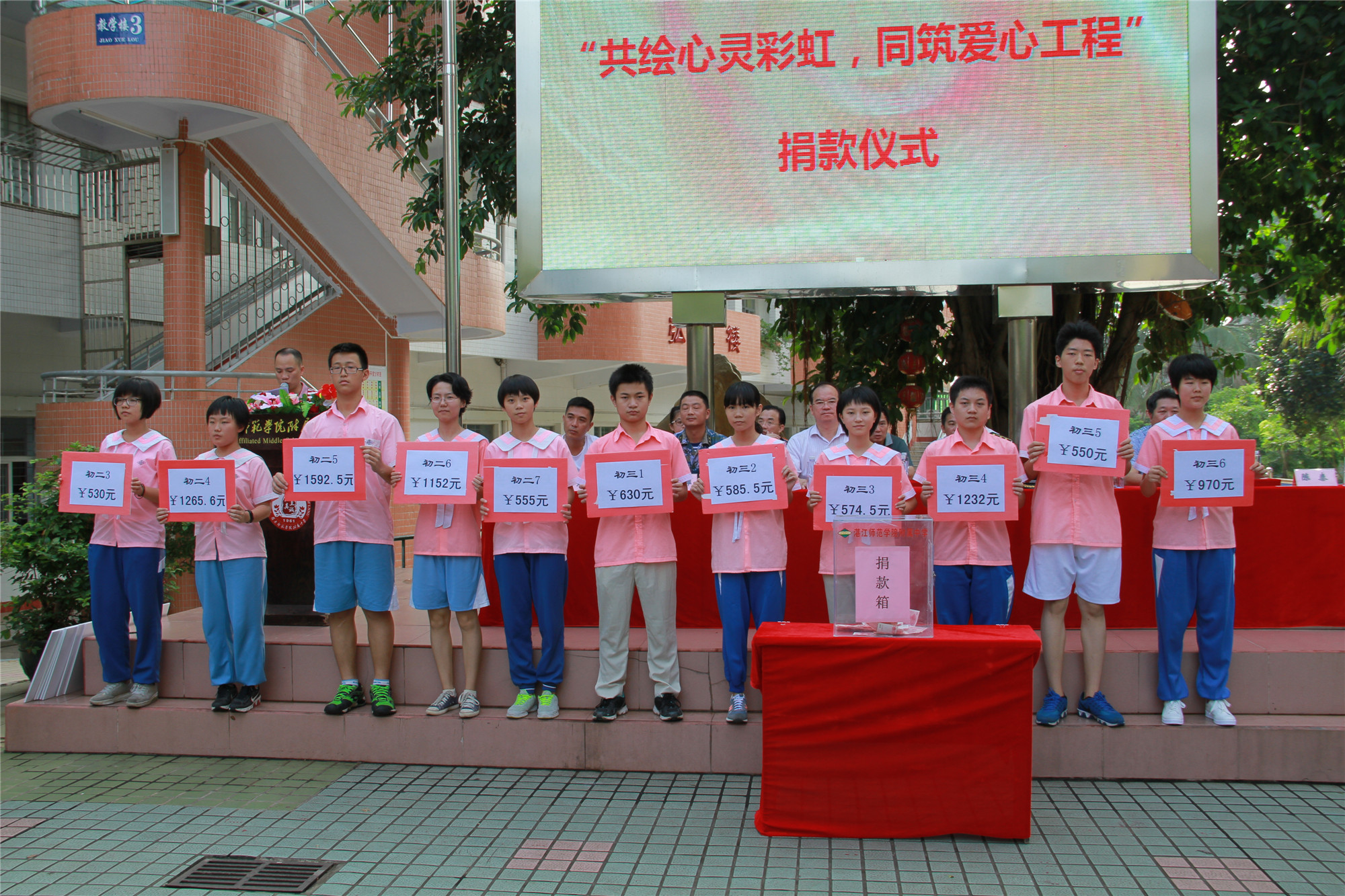 活动中,校级领导首先带头为爱心助学工程现场捐款。接着是社会爱心单位和爱心个人捐款,学校回赠爱心单位牌匾和感谢信。然后是各班学生和家长捐款。最后,我校对本次爱心捐款先进集体和个人进行了表彰。