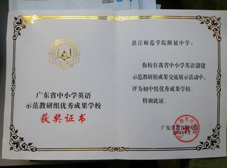 热烈祝贺我校初中英语教研组被评为省示范教研组