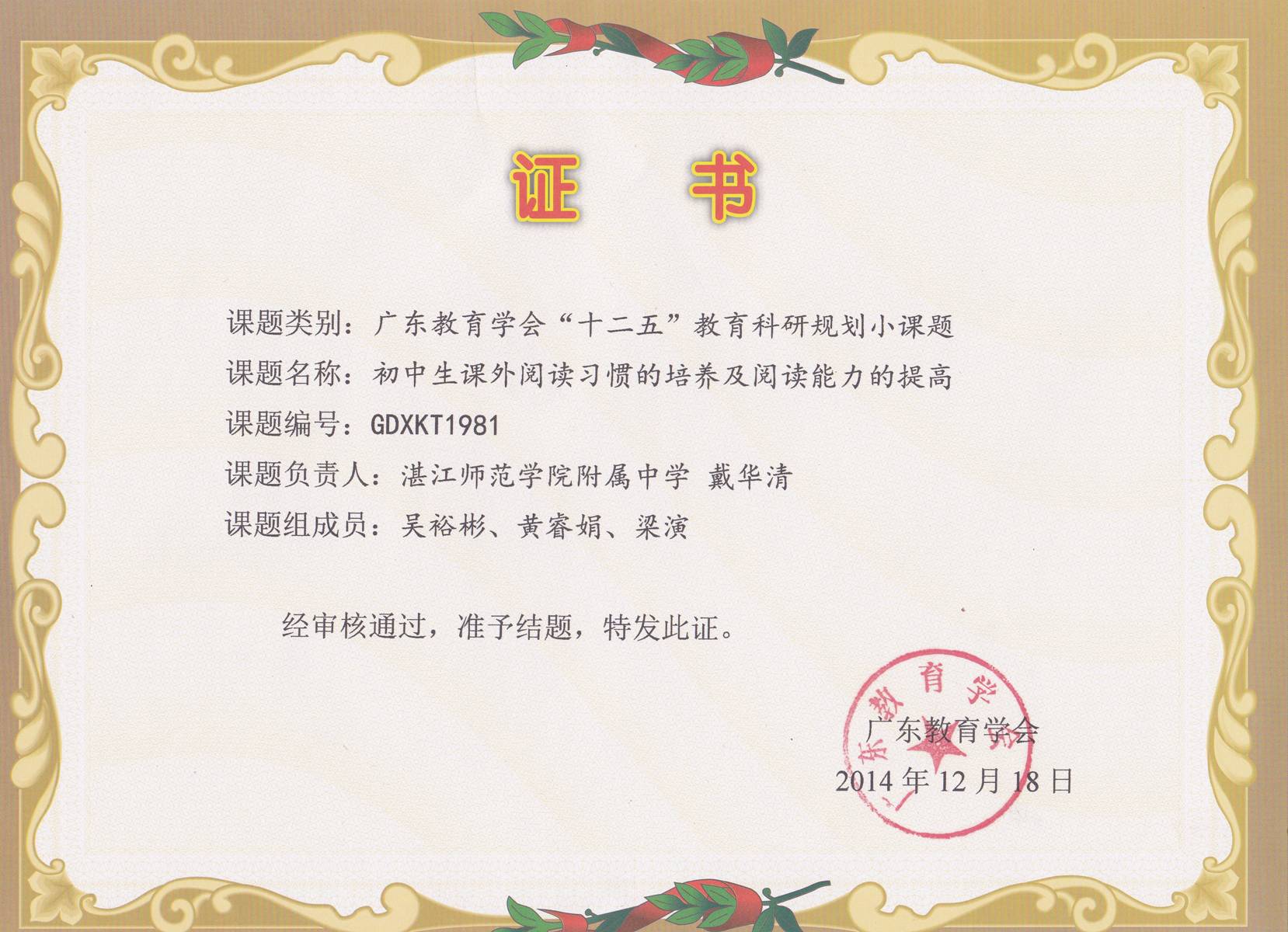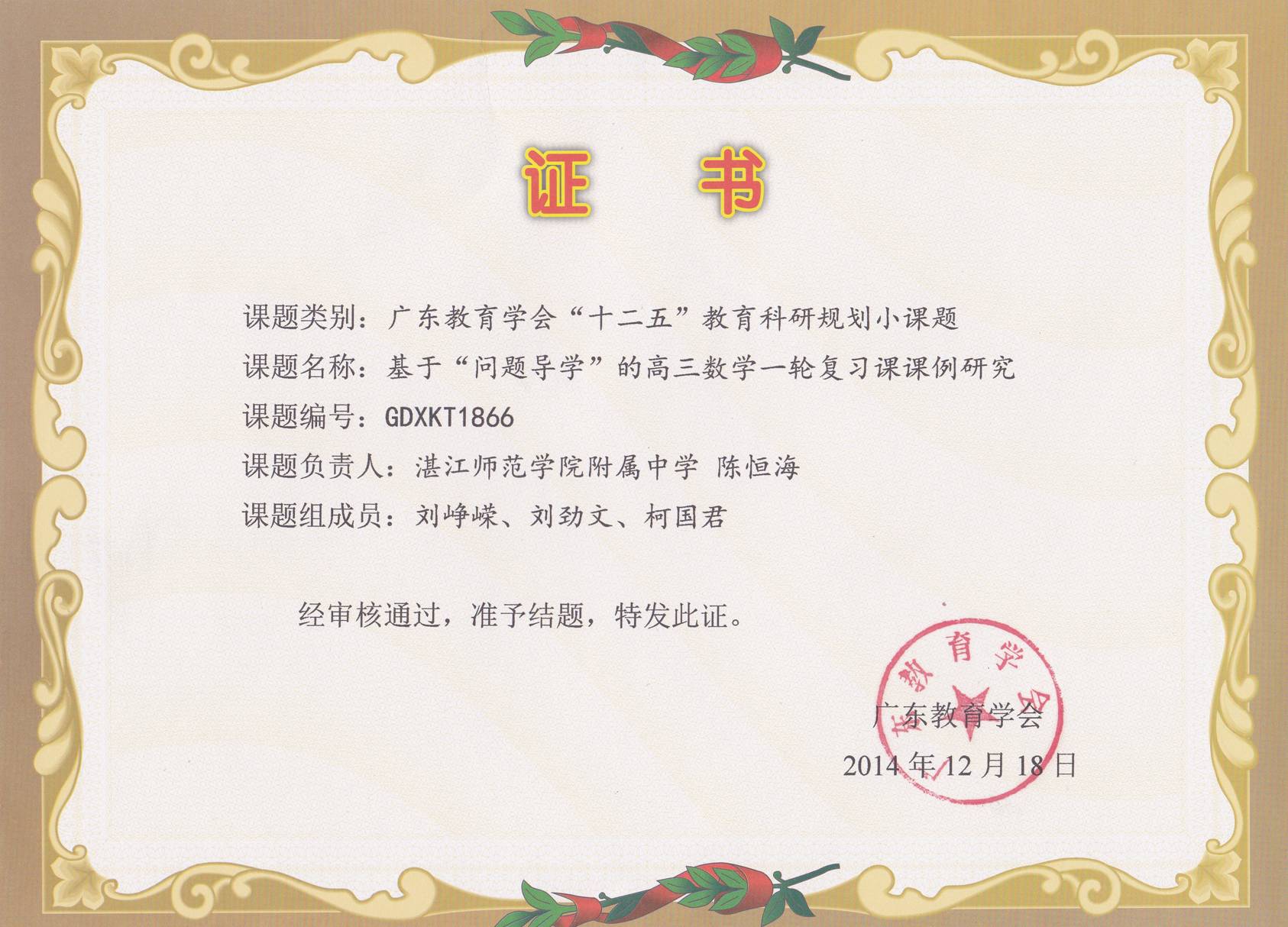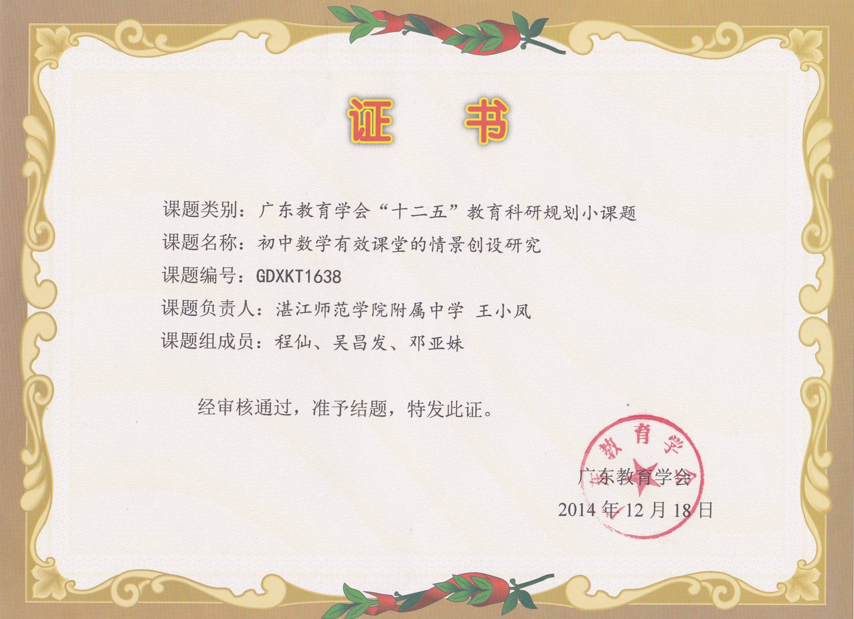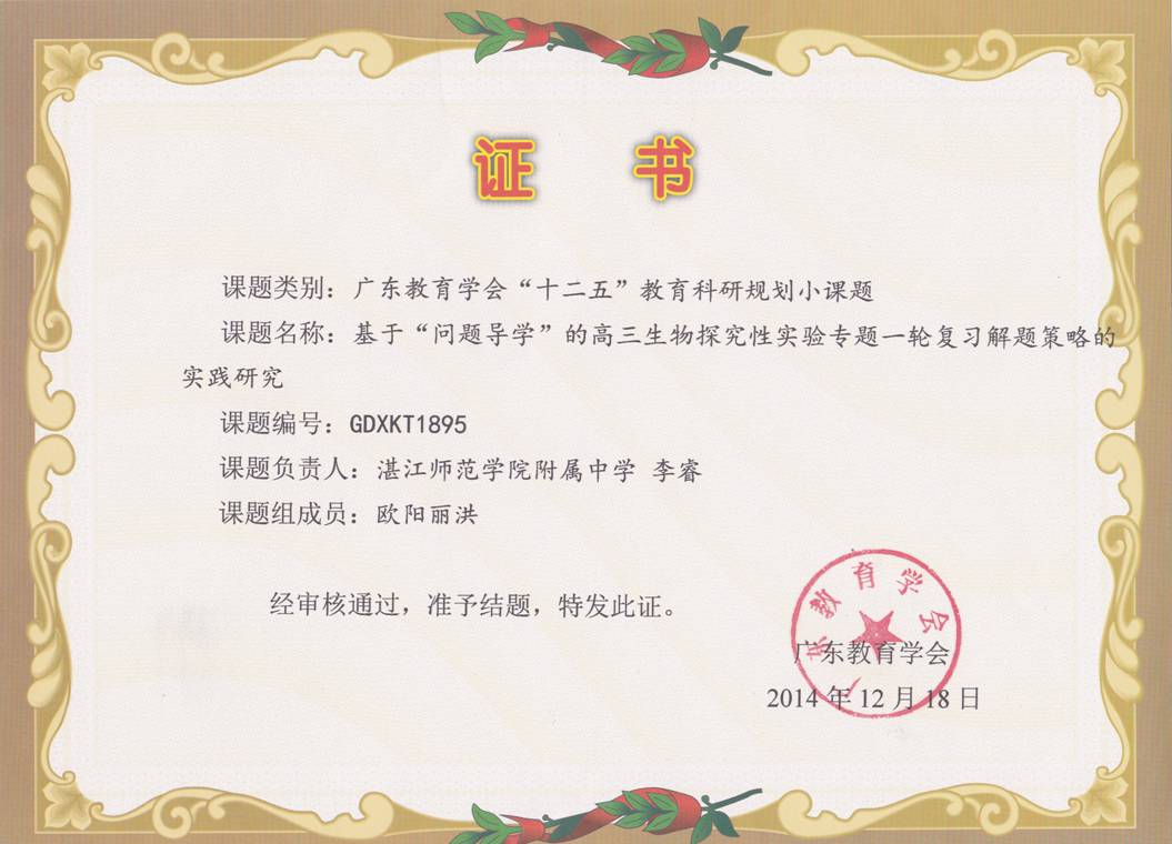 热烈祝贺我校五项省教育学会小课题顺利结题