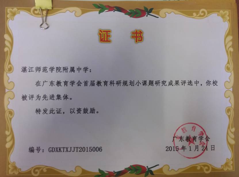 热烈祝贺我校被评为广东省教育学会小课题研究先进集体 来源:教研中心 发布时间:2015-01-27 浏览次数: 次 【字体:小 大】 2015年1月24日广东省教育学会在广东实验中学举行了首届小课题研究成果表彰大会,我校被评为广东省教育学会小课题研究先进集体,在会上刘峥嵘老师代表我校作了小课题研究的经验的介绍。本次评审中,我校获奖的有:一等奖 刘峥嵘 任淑花 陈恒海 二等奖 王小凤 麦建华 王晓敏 戴华清 陈玉琼 三等奖 黎文贞 李文送 张妙龄 李睿 分享到: 【打印正文】