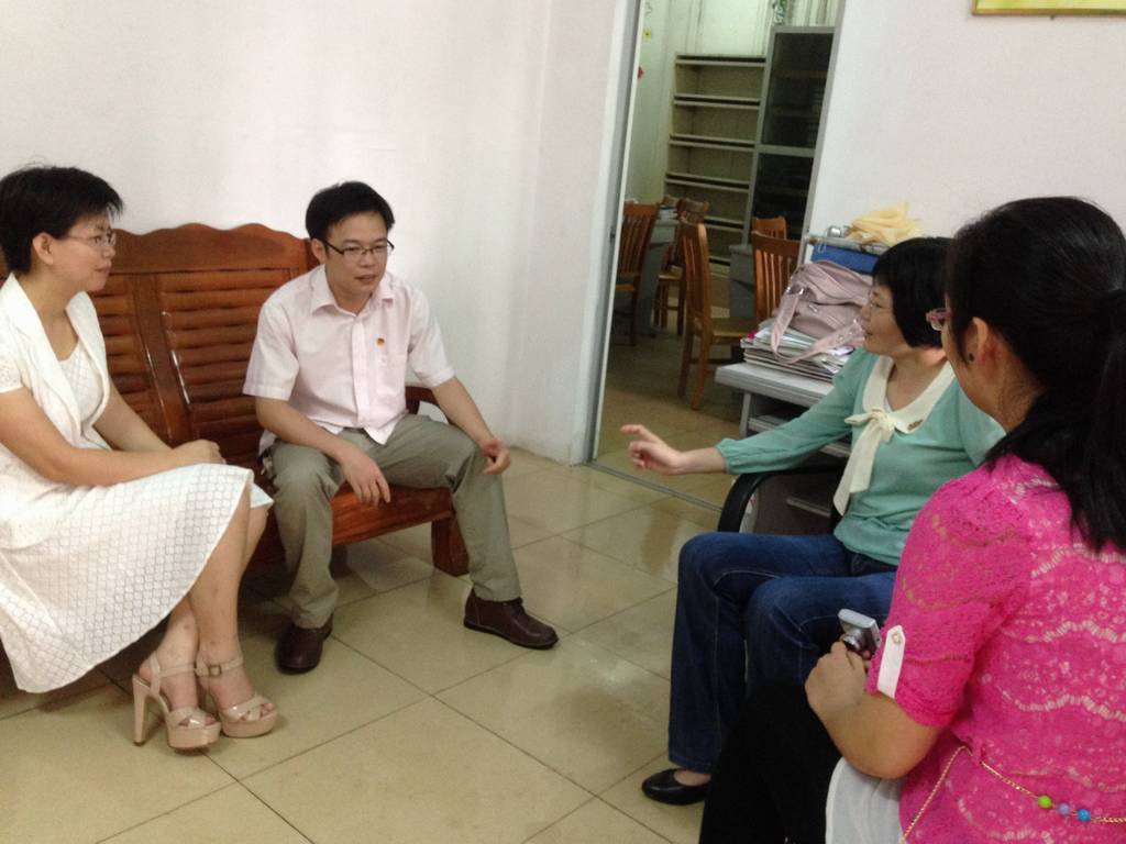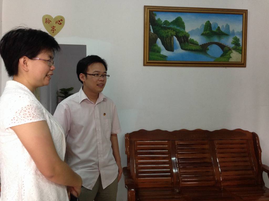 湛江市机电学校团委书记林沛英一行参观我校心理咨询室 来源: 发布时间:2014-04-24 浏览次数: 次 【字体:小 大】 4月24日上午,在我校团委副书记李文送的陪同下,湛江市机电学校团委书记林沛英一行3人参观了我校心理咨询室,并听取了学校专职心理教师潘少霞老师的经验介绍。 (校团委/文,杨雅雯/摄影) 校团委李文送副书记陪同林沛英书记参观心理咨询室 我校专职心理教师潘少霞老师介绍经验 心理咨询室独特的设计吸引来访者拍照留念 分享到: 【打印正文】