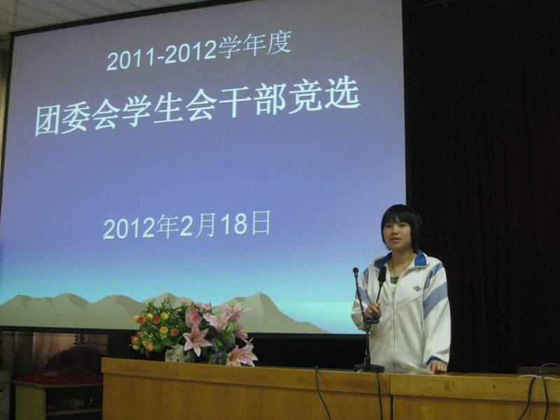 我校举行2011-2012学年度团委会学生会干部竞选活动 来源: 发布时间:2012-02-24 浏览次数: 次 【字体:小 大】 2月18日下午,我校团委在学校3号楼二楼电教室举行2011-2012学年度团委会学生会干部竞选活动。一批热爱学生工作的优秀学生纷纷上台展示自我,发表竞选讲话。 所有竞选同学、老干和老师合影 分享到: 【打印正文】