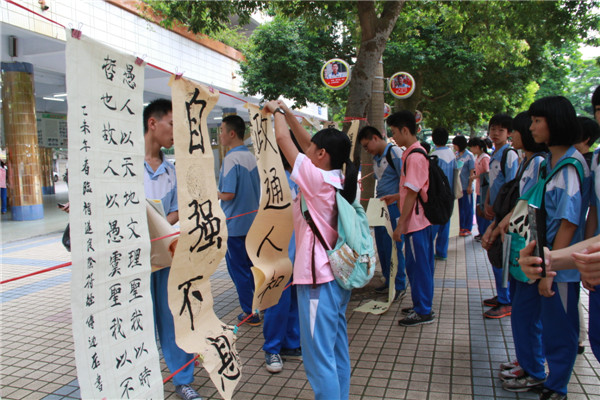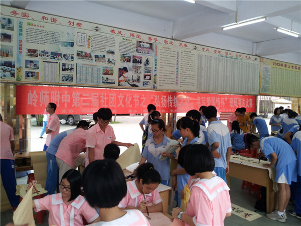 5月21日下午,我校团委在八层楼举行岭师附中第二届社团文化节之现场书法比赛活动。活动由翰墨书法社和艺术教研组联合承办,湛江卓大书法艺术中心协办。本次活动的主题是“弘扬传统文化,书写爱国情怀”。