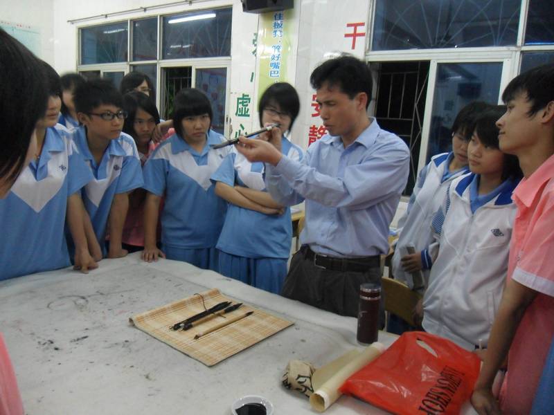 指导教师黄国均老师讲述了书法的重要性,并指出作为优秀书法者应具备的素质和书法工具。