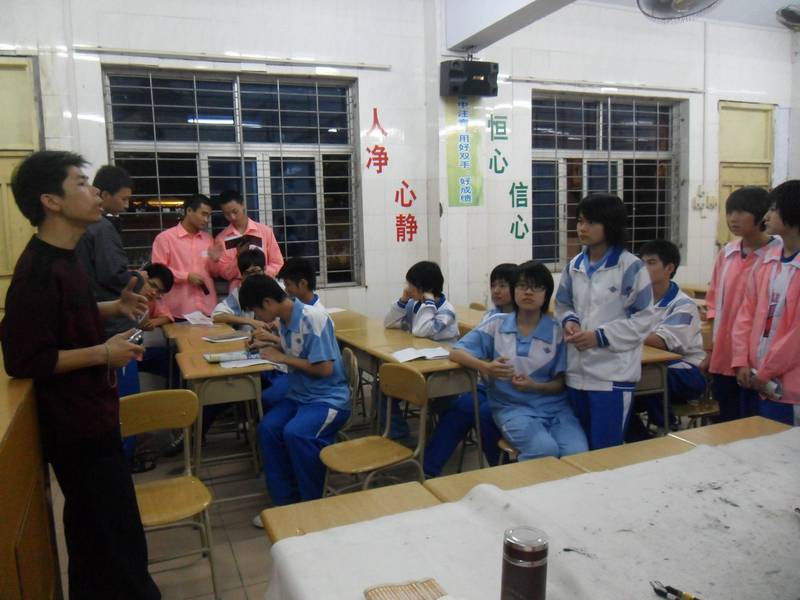 3月30日晚,我校书法社在一号教学楼举行毛笔书法专题讲座活动。全体书法社的成员、对书法感兴趣的同学和指导教师黄国均老师参加了活动。本期应邀嘉宾是湛江市书画协会的何仁老师。