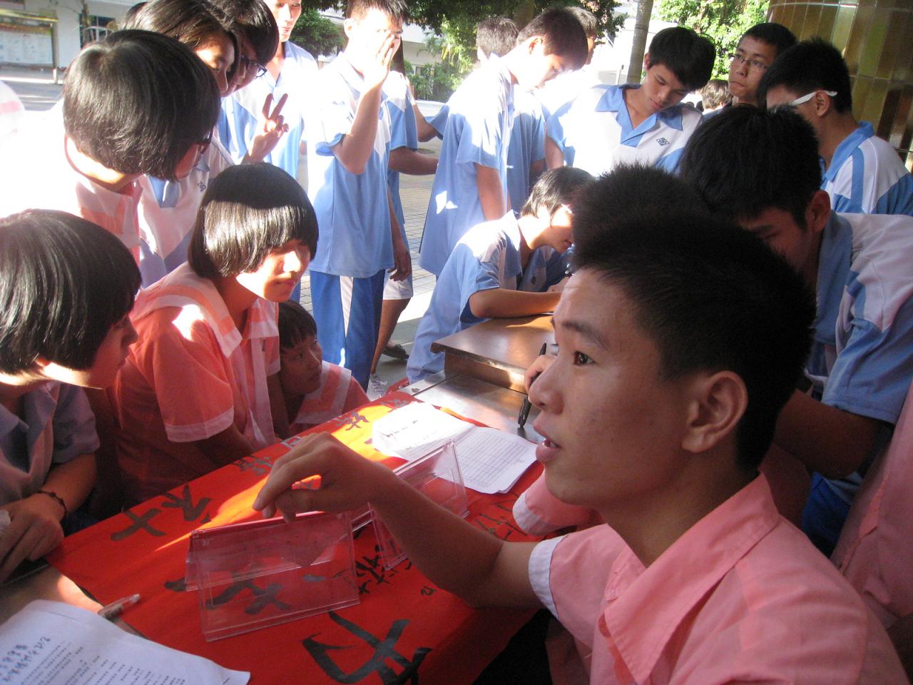 我校社团招新现场“火”了 来源: 发布时间:2013-09-26 浏览次数: 次 【字体:小 大】 招新现场 金风送爽,青春似火。 9月25日下午,我校2013-2014学年度学生社团招新在学校八层楼楼底如期进行。文学社、爱心社、动漫社、文工团、模联协会、书法社、音乐社、创意设计社等社团均受到广大学生的青睐,现场报名学生热情高涨、兴趣浓厚,演绎了“我的青春,我作主”的序曲。精彩的社团活动将会丰富广大社员的校园生活。 爱心社招新 动漫社招新 书法社招新 模联协会招新 文学社招新 面试学生填写资料 社团干部咨询面试学生 学生排队等待面试 社团招新风景线 分享到: 【打印正文】