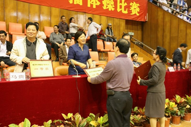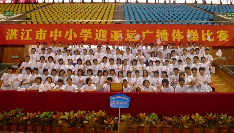 喜讯:我校代表队在市举行中小学广播操大赛中勇夺第一 来源:本站原创 发布时间:2011-12-08 浏览次数: 次 【字体:小 大】 2010年11月7日,湛江市迎亚运中小学生广播体操大赛在市体育中心体育馆热烈举行,经过来自各县(市、区)和直属学校的16个代表队总共1600多名选手激烈PK,我校代表队用整齐的步伐、洪亮的口号、标准的动作、尽情地舞动着健美的身姿,展示了团结一致、奋发向上的精神风貌,最终技压群雄勇夺第一。 精神焕发、气势磅礴 比赛场面壮观 领奖 颁奖合影 开心...... 分享胜利 智能标签: 中小学广播操大赛 分享到: 【打印正文】 相关内容