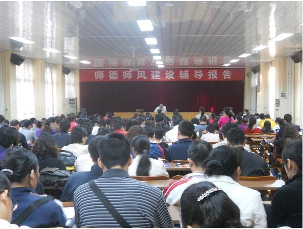 翁组长在报告中阐述了党风廉政建设进校园的意义,并指出要加强教师廉洁修身的意识。他以大量的典型案例生动的分析了良好的师德师风是促进社会和谐发展的需要。全校教职工作听了报告后获益匪浅。
